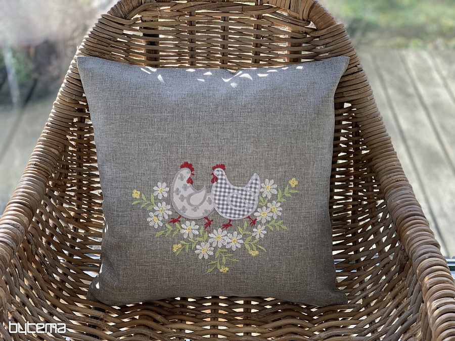 Federa ricamata con motivo pasquale e fiori primaverili.