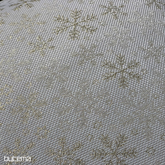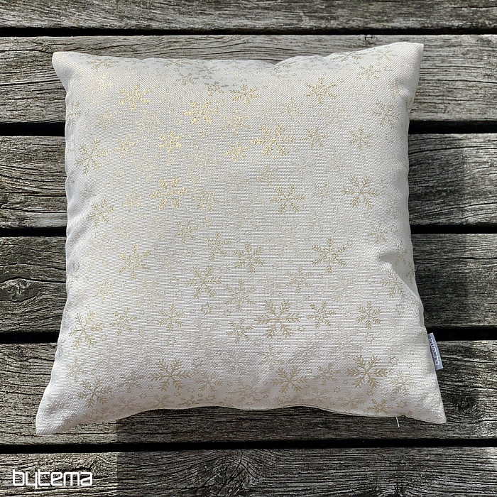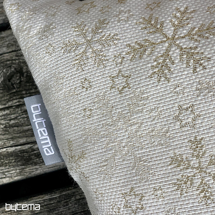 Le coperture decorative natalizie con un disegno di bellissimi fiocchi di neve dorati grandi e piccoli su uno sfondo color crema saranno una decorazione magica per la tua casa.