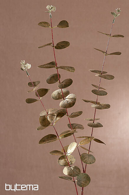 L'eucalipto è lungo 90 cm e ha tre rami. Le foglie sono di un colore grigio-verde opaco e finemente spazzolate fino a ottenere una patina dorata. Una splendida decorazione natalizia per la vostra casa.