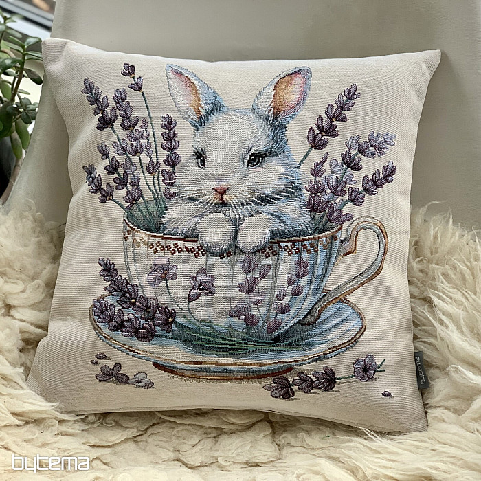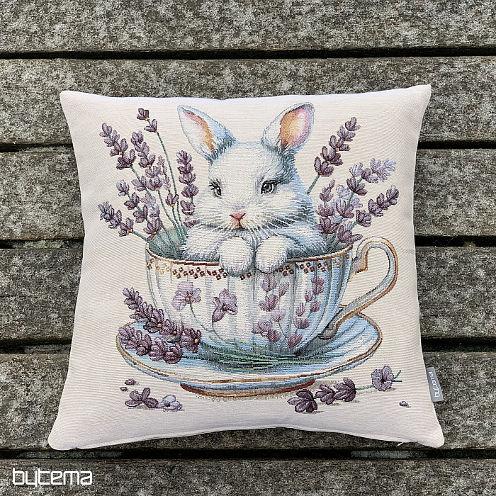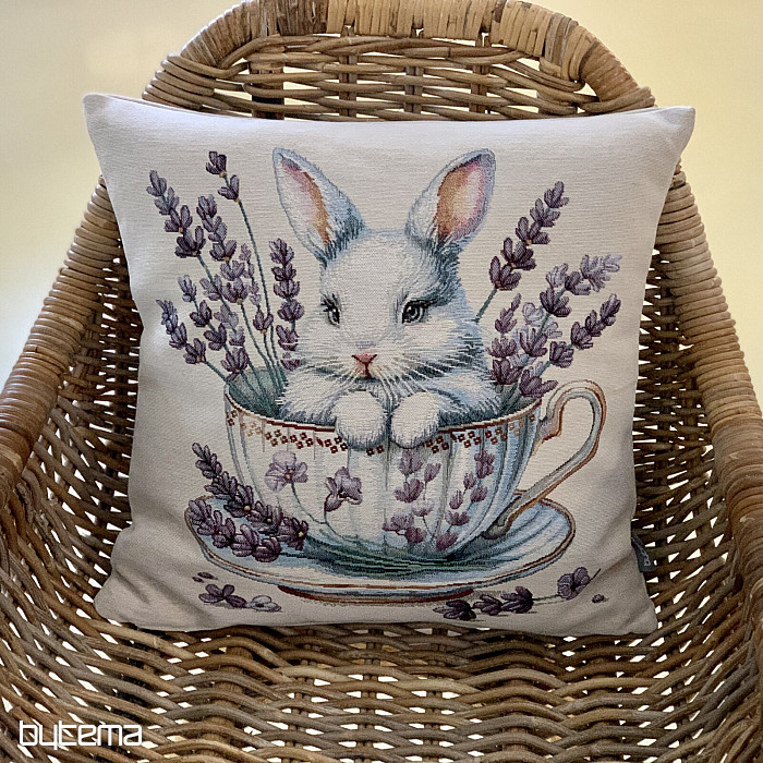 Federa in arazzo con un grazioso coniglietto in porcellana, con profumata lavanda. Una decorazione bella e delicata, non solo per il periodo pasquale.