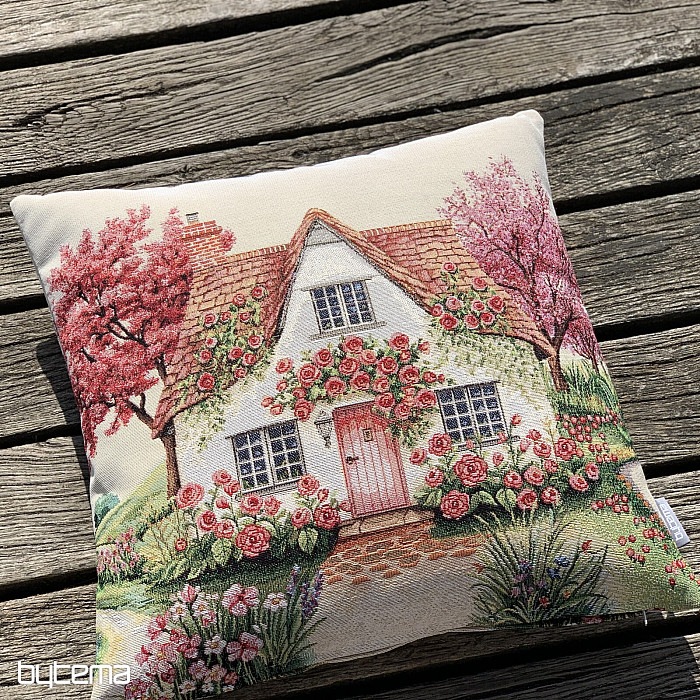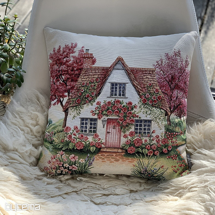 Copertura per arazzo con il motivo di una casa di campagna ricoperta di rose rampicanti.