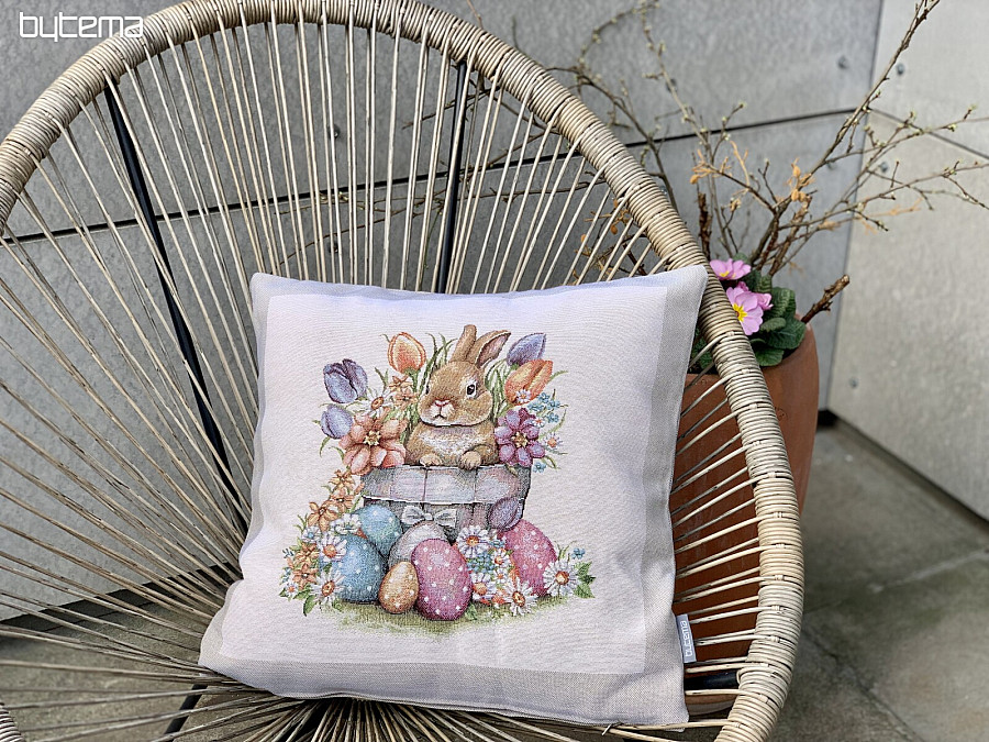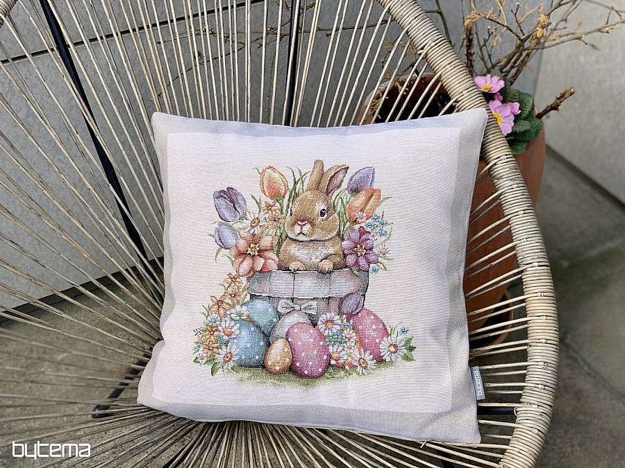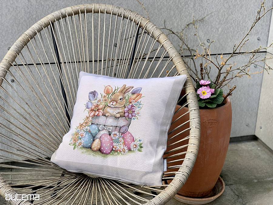 Fodera per cuscino arazzo LEPRE IN VASO DA FIORI cornice beige - Dimensioni: 45 x 45 cm