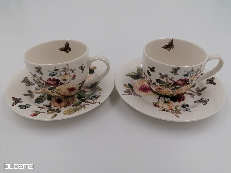 Due tazzine da caffè espresso da 95 ml con relativi piattini formano una splendida coppia, confezionata in una scatola stampata, imbottita e rivestita in raso bianco.