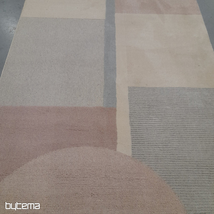 Lussuoso tappeto belga in colori pastello con motivi geometrici 3D. L'effetto plastico è creato dal vello in lana di pecora, disposto in modo diverso. Ciò garantisce al tappeto elevata resistenza e durata.