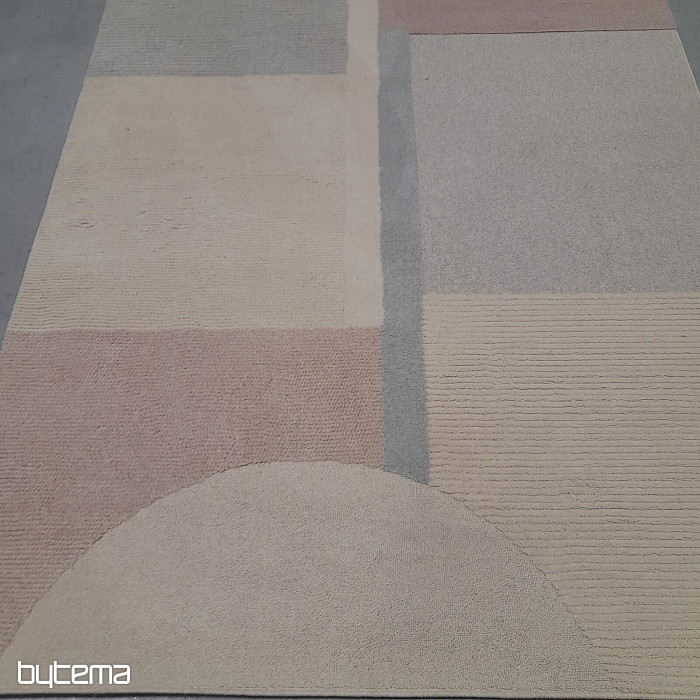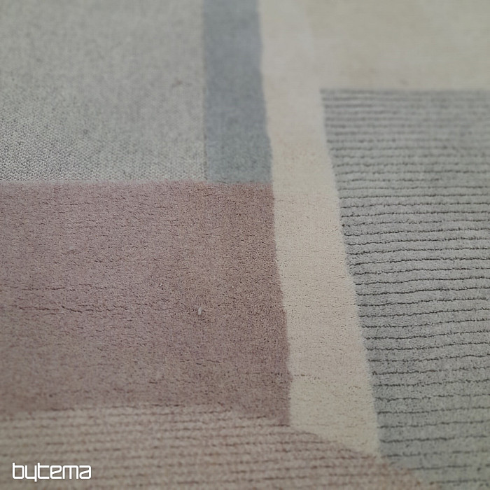Lussuoso tappeto belga in colori pastello con motivi geometrici 3D. L'effetto plastico è creato dal vello in lana di pecora, disposto in modo diverso. Ciò garantisce al tappeto elevata resistenza e durata.