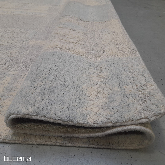 Lussuoso tappeto belga in colori pastello con motivi geometrici 3D. L'effetto plastico è creato dal vello in lana di pecora, disposto in modo diverso. Ciò garantisce al tappeto elevata resistenza e durata.