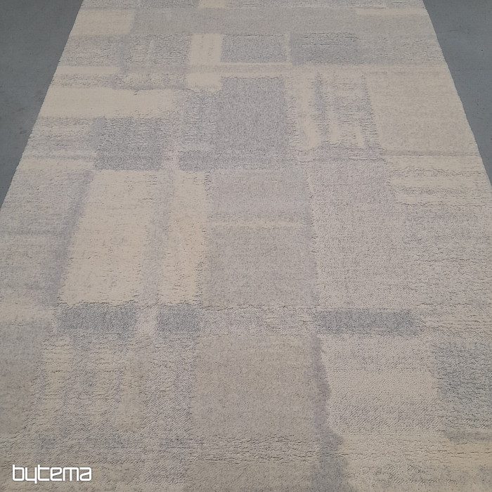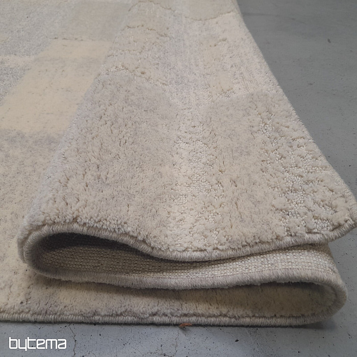 Lussuoso tappeto belga in colori pastello con motivi geometrici 3D. L'effetto plastico è creato dal vello in lana di pecora, disposto in modo diverso. Ciò garantisce al tappeto elevata resistenza e durata.