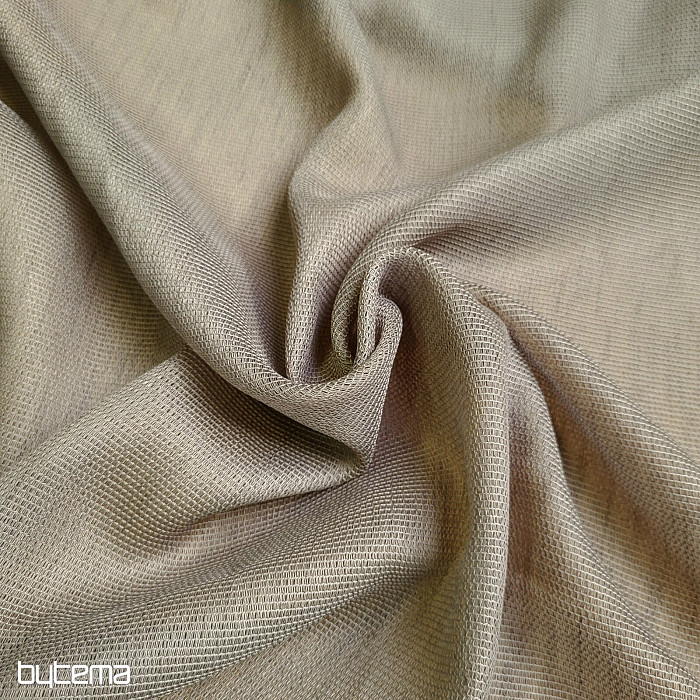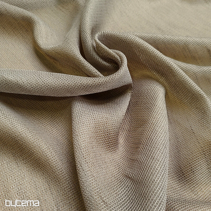 La tenda è morbida al tatto, ma fittamente intrecciata con un filo beige scuro che crea piccoli quadrati.