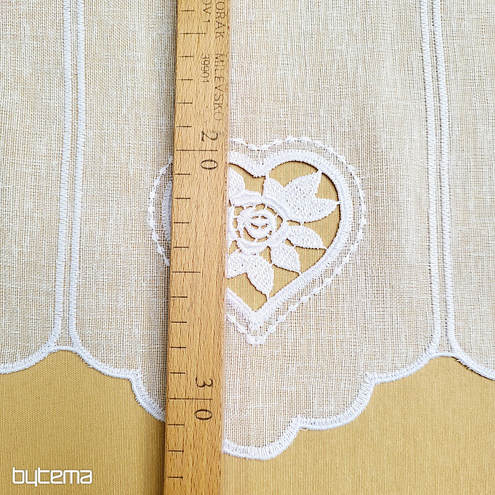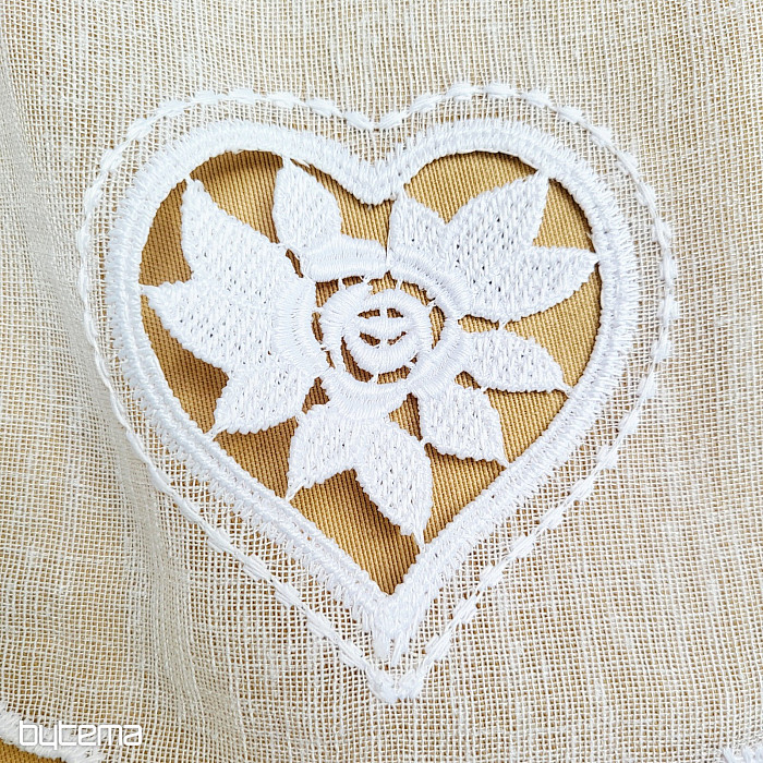 Bellissima tenda vintage con cuore intagliato. La tenda è molto morbida e piacevole al tatto, adatta a finestre in legno o piccole finestre.