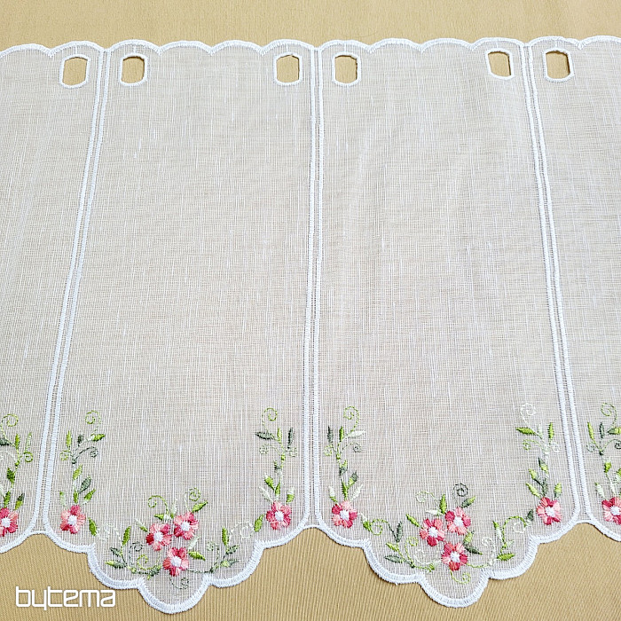 Offriamo la tenda in tre altezze. Nelle altezze di 60 cm e 90 cm, la tenda presenta un fiore ricamato al centro del pannello.