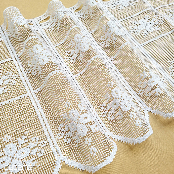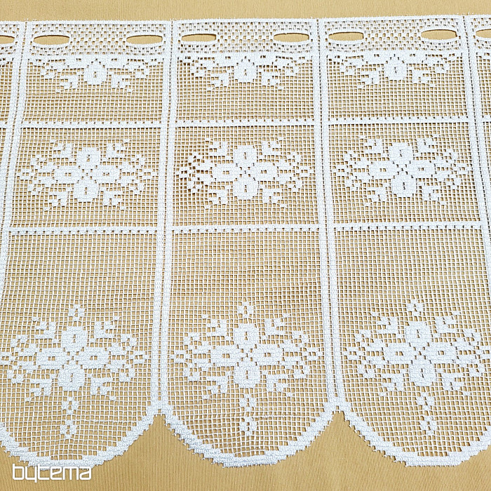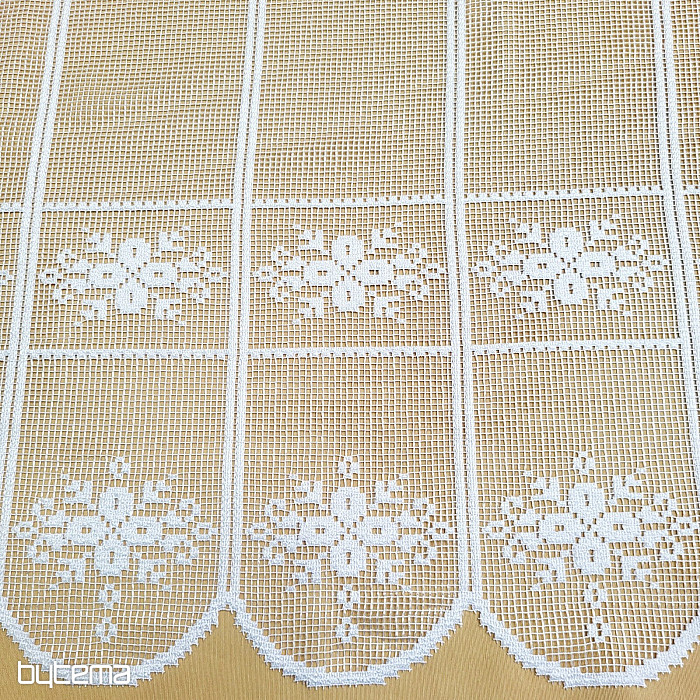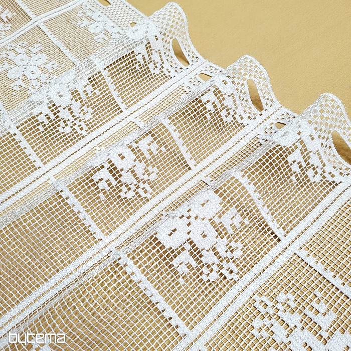 Bellissima tenda vintage con motivo floreale. Sembra realizzata all'uncinetto ed è adatta a tutte le baite in legno o alle case di campagna.