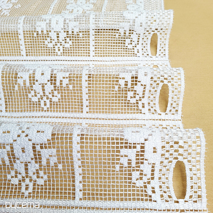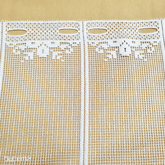 Offriamo la tenda in quattro altezze. Tutte le misure sono dotate di occhielli per il fissaggio su un'asta in vetro colorato. La tenda è tagliata a pannelli, non è necessario cucirla.
