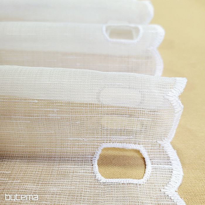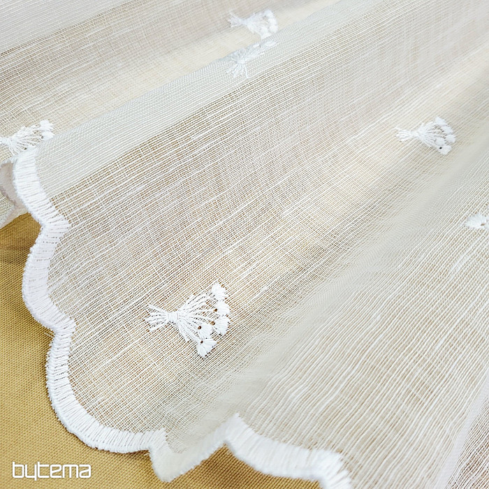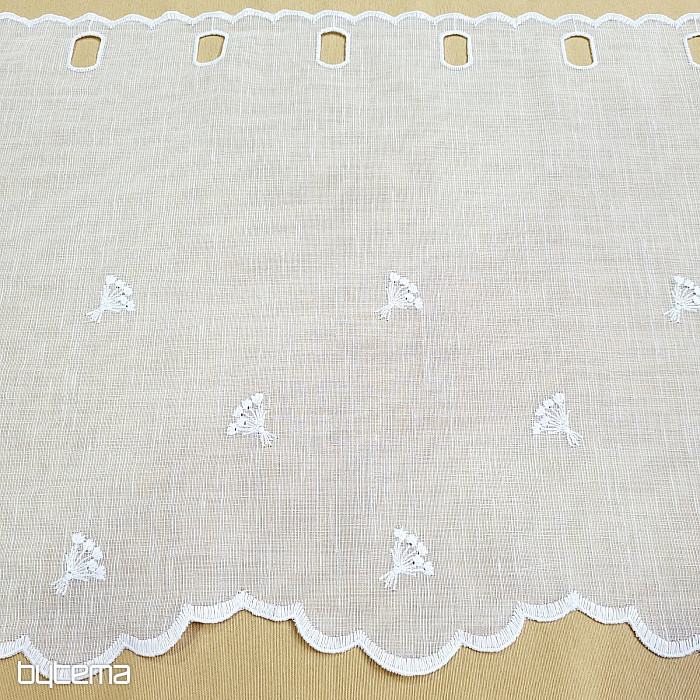 Offriamo la tenda in tre altezze. Nelle altezze di 60 cm e 90 cm, la tenda presenta un fiore ricamato al centro del pannello.