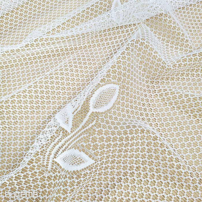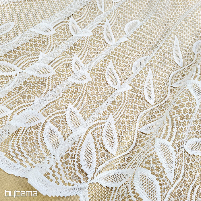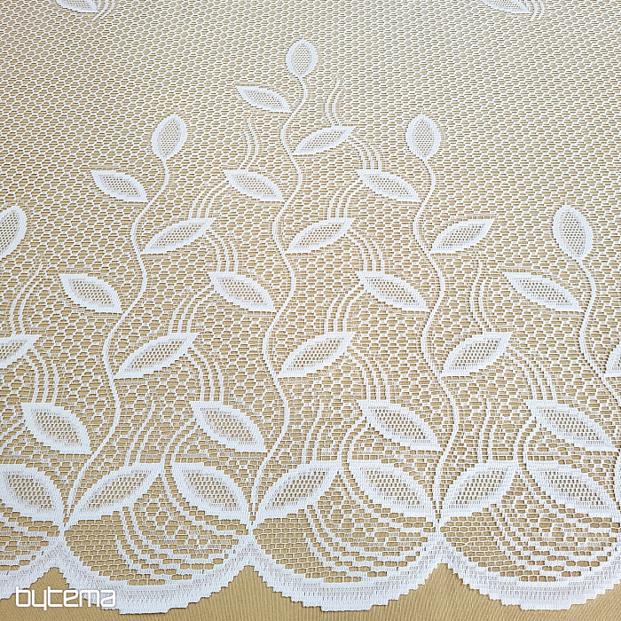 Una splendida tenda jacquard moderna, rifinita con un bordo ampio e fitto. Foglie più piccole sono sparse su tutta la superficie della tenda.