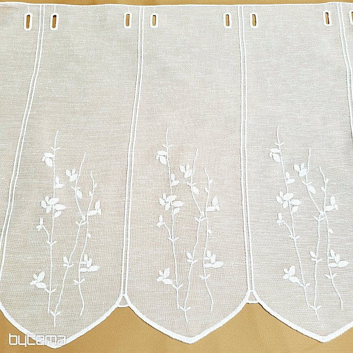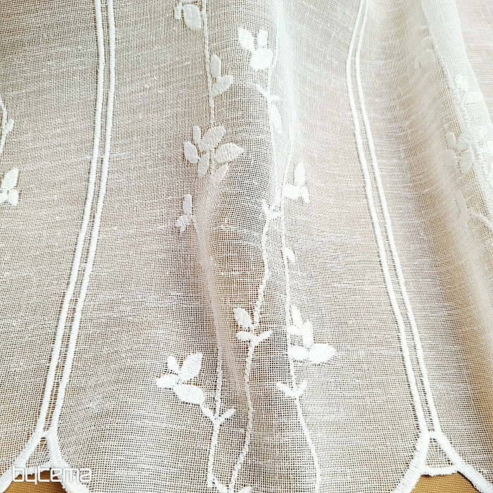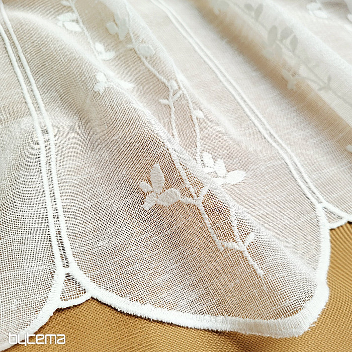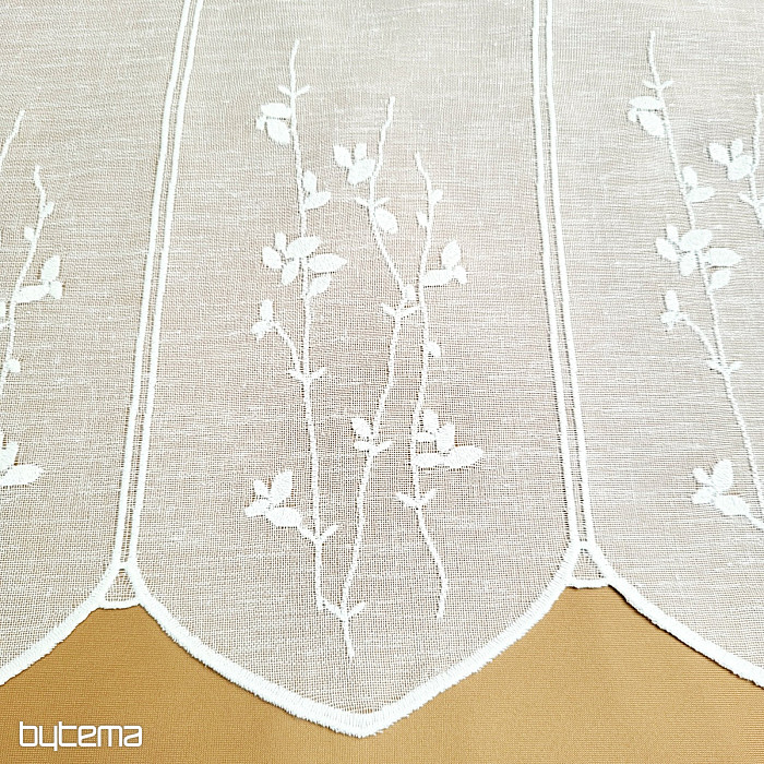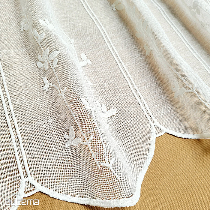 La vetrata decorativa con un delicato motivo moderno di steli e foglie in una tenue tonalità crema, prodotta dall'azienda tedesca GERSTER, è una garanzia di qualità senza tempo.