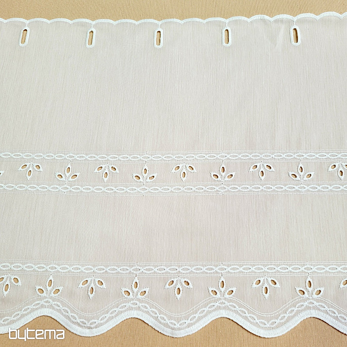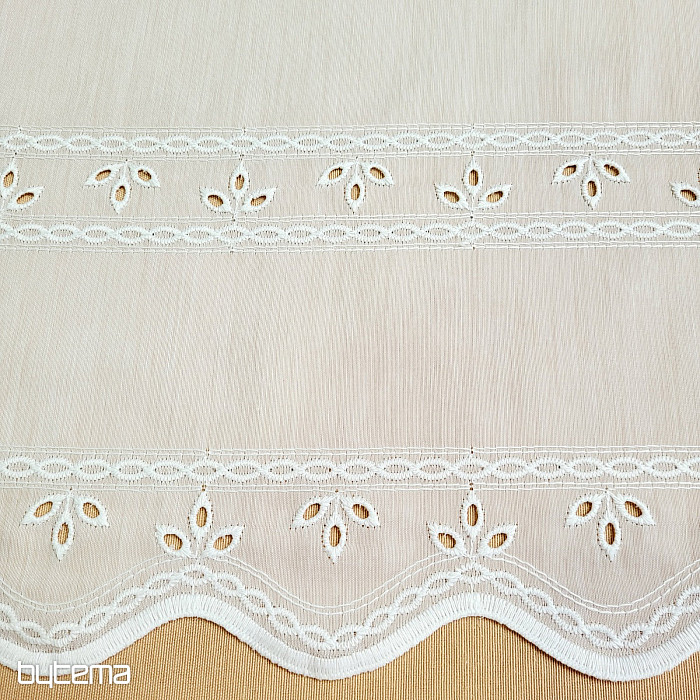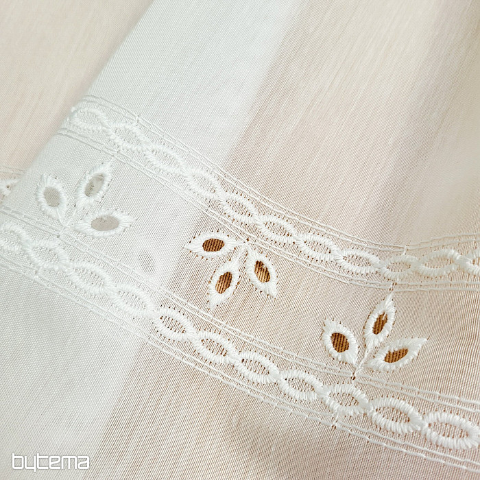 La tenda in vetro colorato con splendidi ricami color crema del produttore tedesco GERSTER è una garanzia di qualità senza tempo.