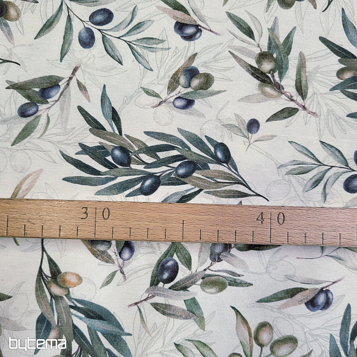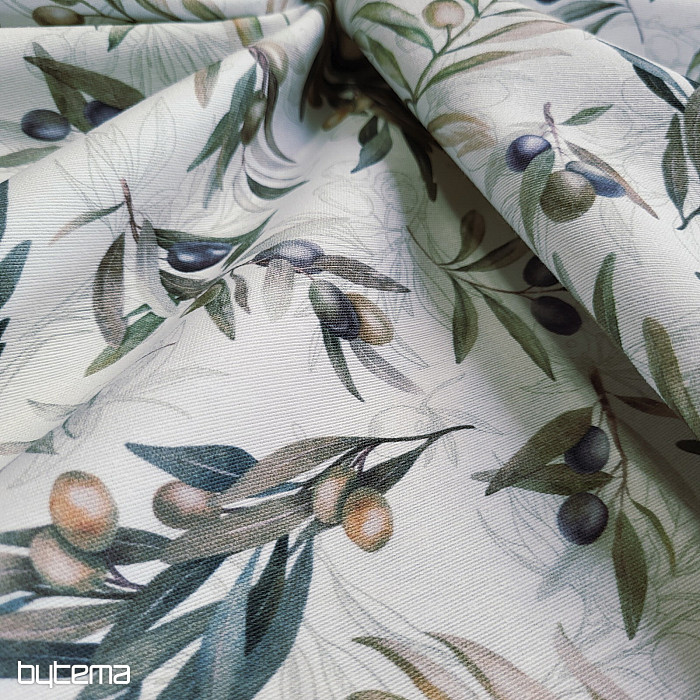 Il tessuto decorativo con motivo a olive ha un aspetto fresco e mediterraneo ed è adatto per la cucina, la sala da pranzo o per decorazioni estive.
