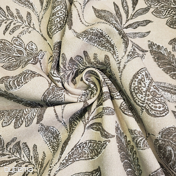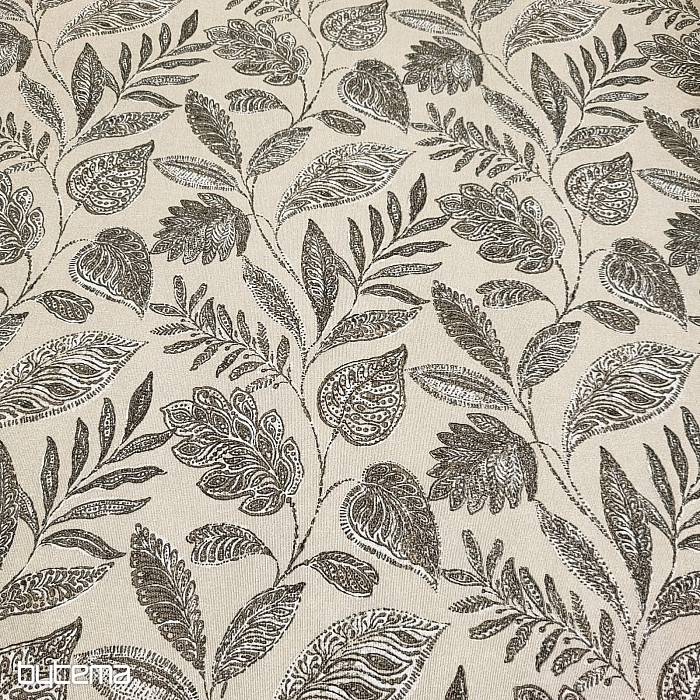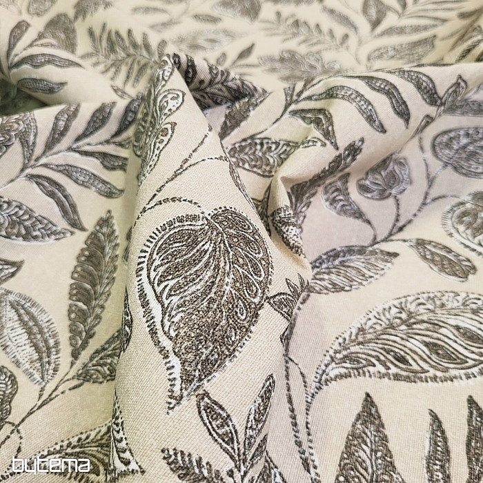 Tessuto decorativo con grandi foglie di vario tipo.