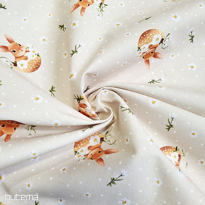 Tessuto decorativo pasquale con un coniglietto nascosto in un guscio d'uovo. Una decorazione bella e carina per i momenti primaverili in casa.