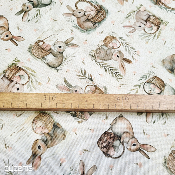 Tessuto decorativo pasquale con coniglietti e uova. Una decorazione bella e carina per i momenti primaverili in casa.