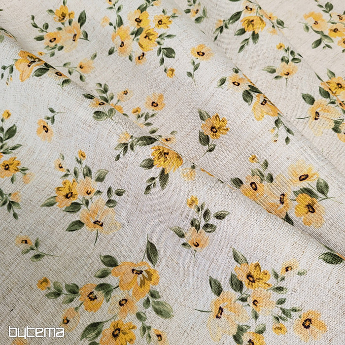 Tessuto decorativo con fiori primaverili in un ricco colore giallo, abbellirà la tua cucina e il tuo pergolato.