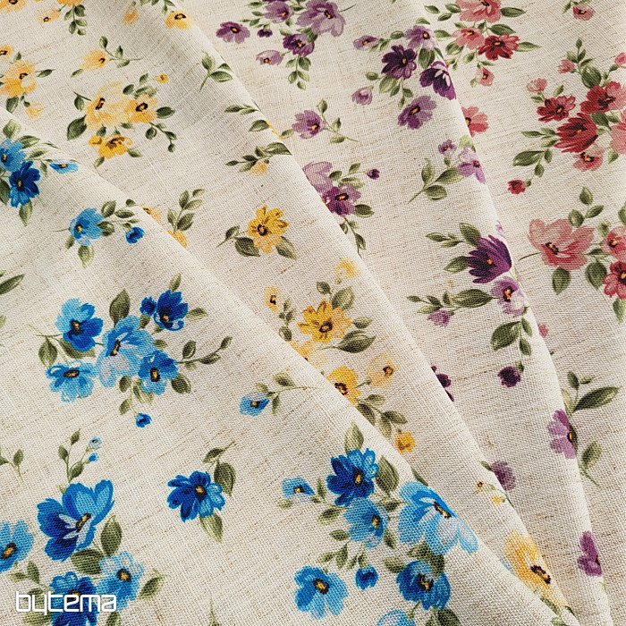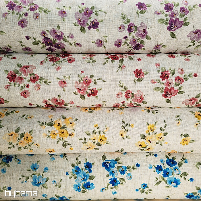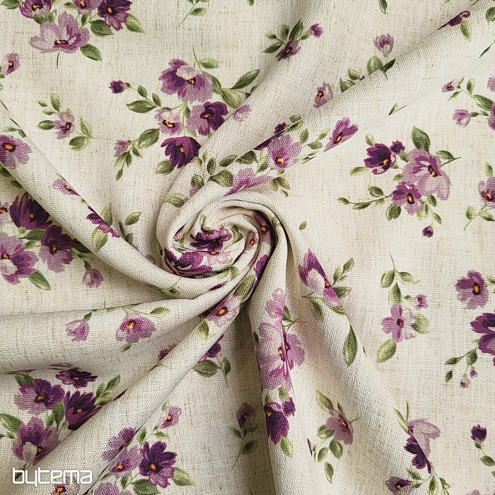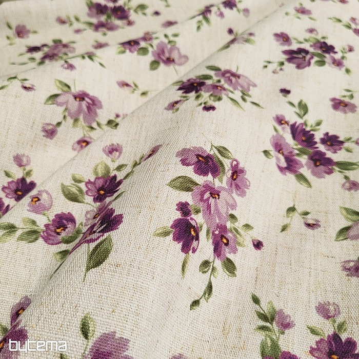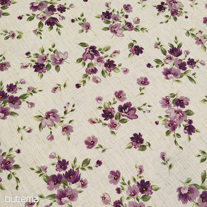 Tessuto decorativo con fiori primaverili in viola scuro abbellirà la tua cucina e il tuo pergolato.