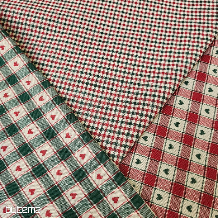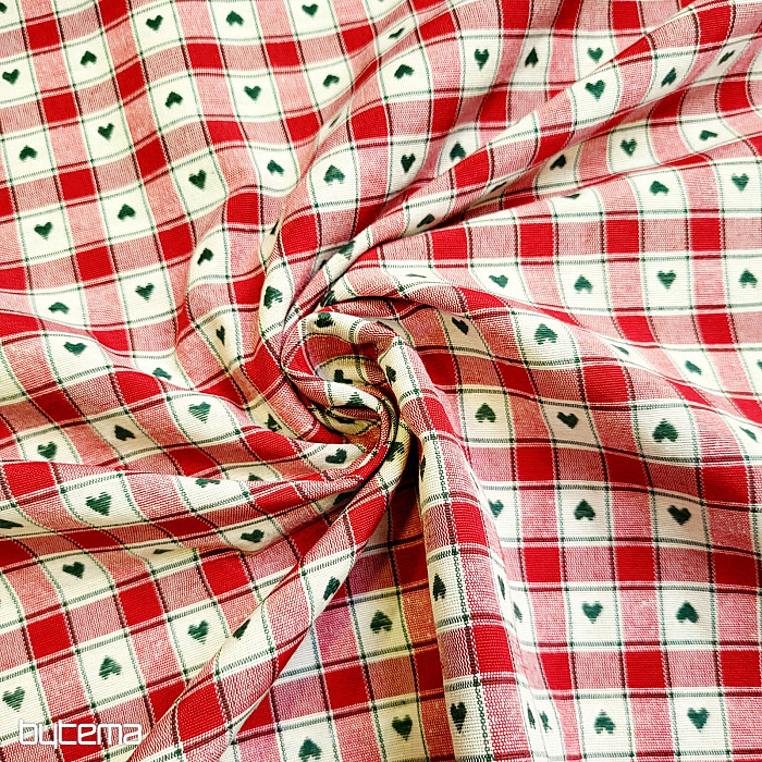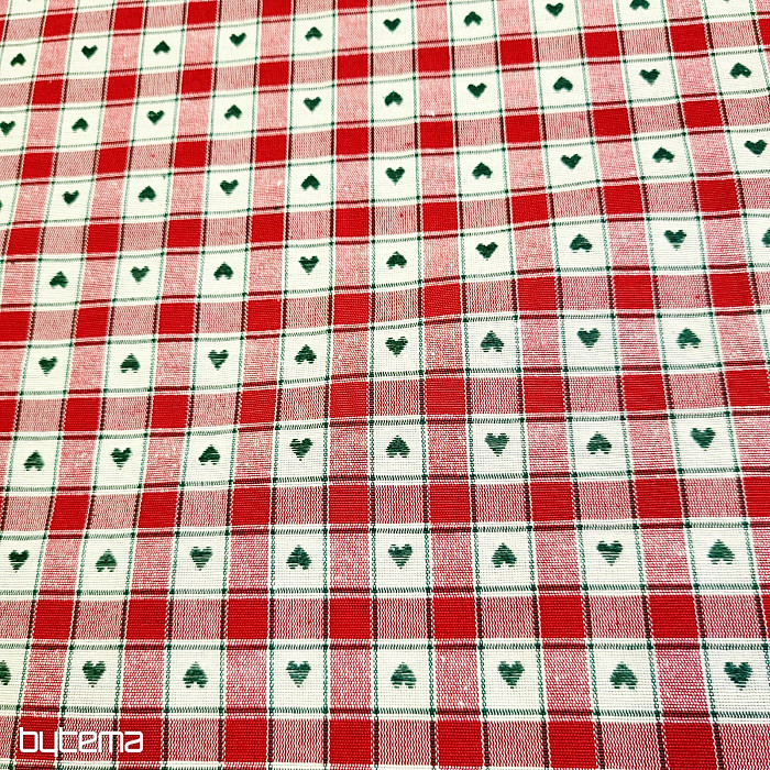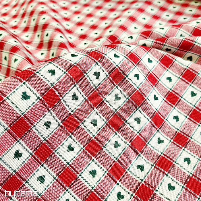 Il tessuto decorativo con motivo a scacchiera e a cuore è perfetto per cottage di campagna e baite in legno.