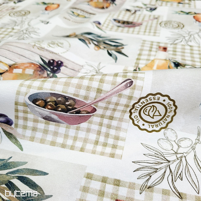 Il tessuto decorativo con motivo a olive ha un aspetto fresco e mediterraneo ed è adatto per la cucina, la sala da pranzo o per decorazioni estive.