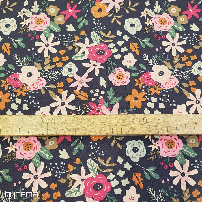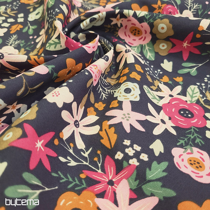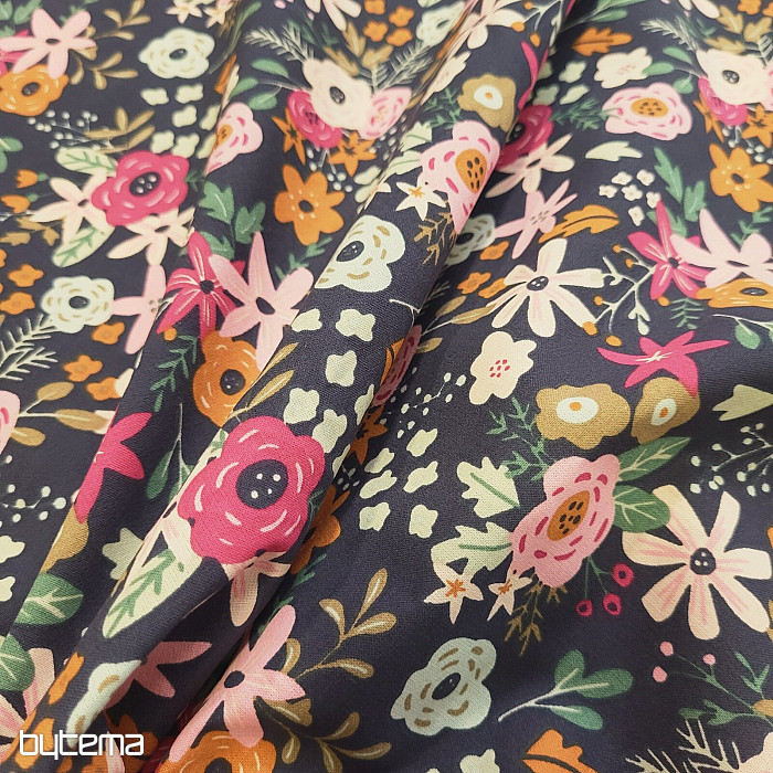 Tessuto di cotone pieno di fiori in fiore.
