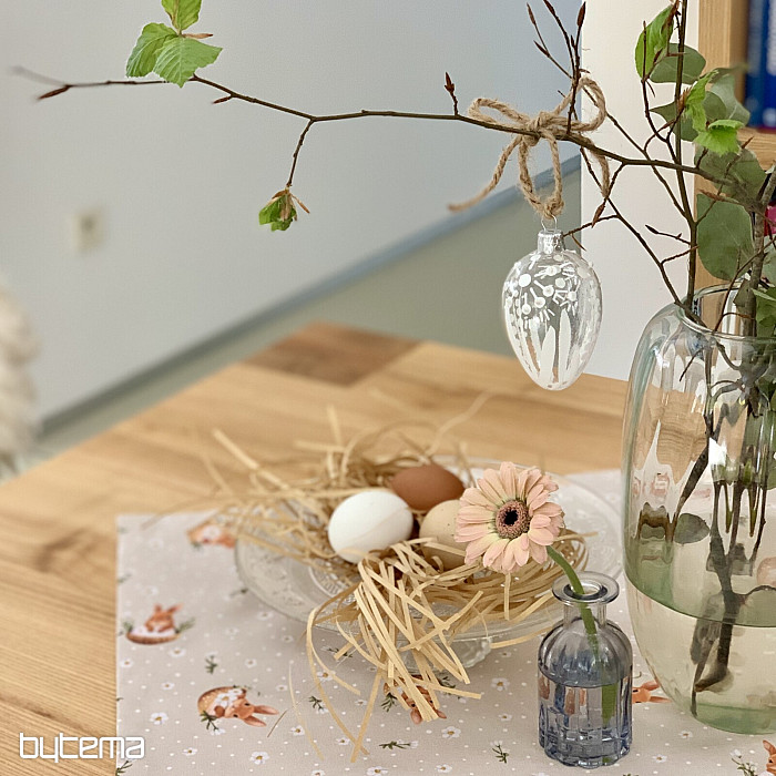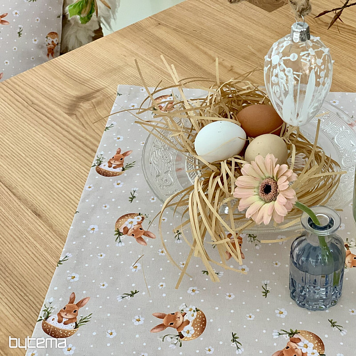 Tovaglia o sciarpa pasquale con un coniglietto nascosto in un guscio d'uovo. Una decorazione bella e carina per la primavera in casa.