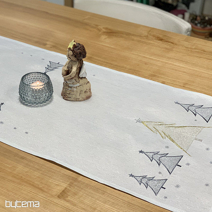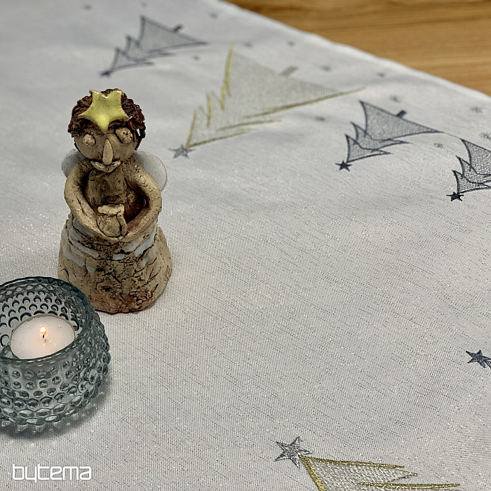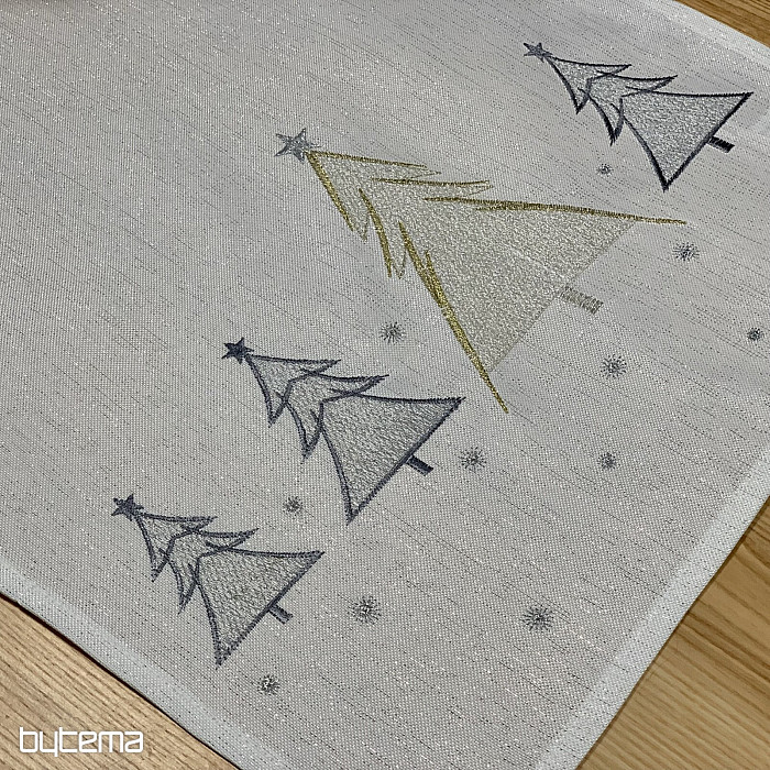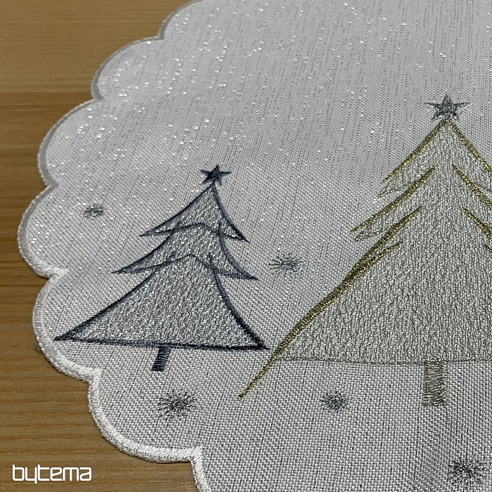 Una tovaglia e una sciarpa natalizie ricamate con gusto e delicatezza, con alberi in due colori, saranno un'aggiunta affascinante alla vostra casa.