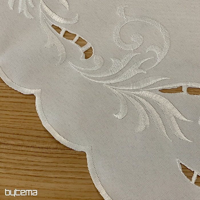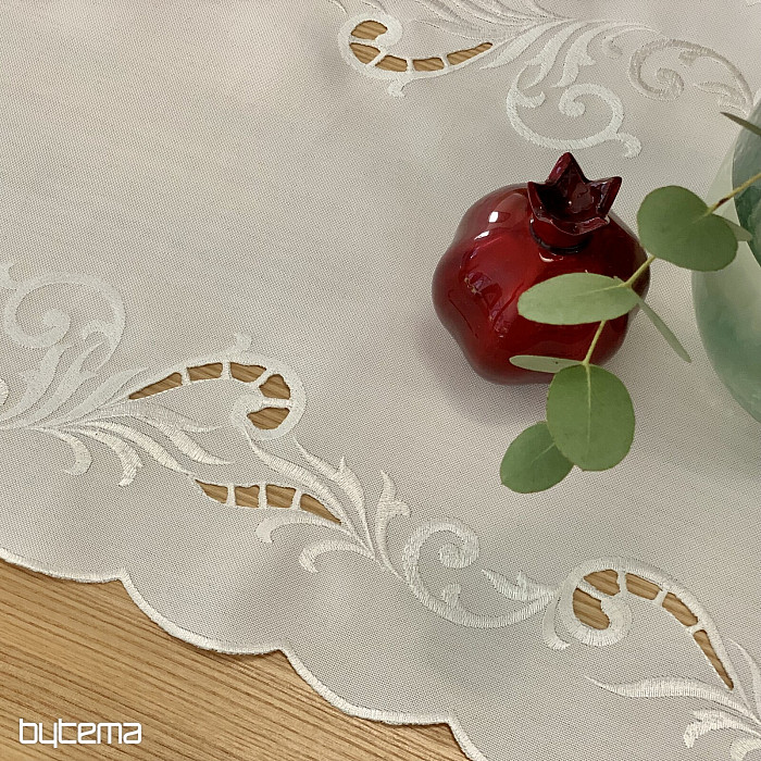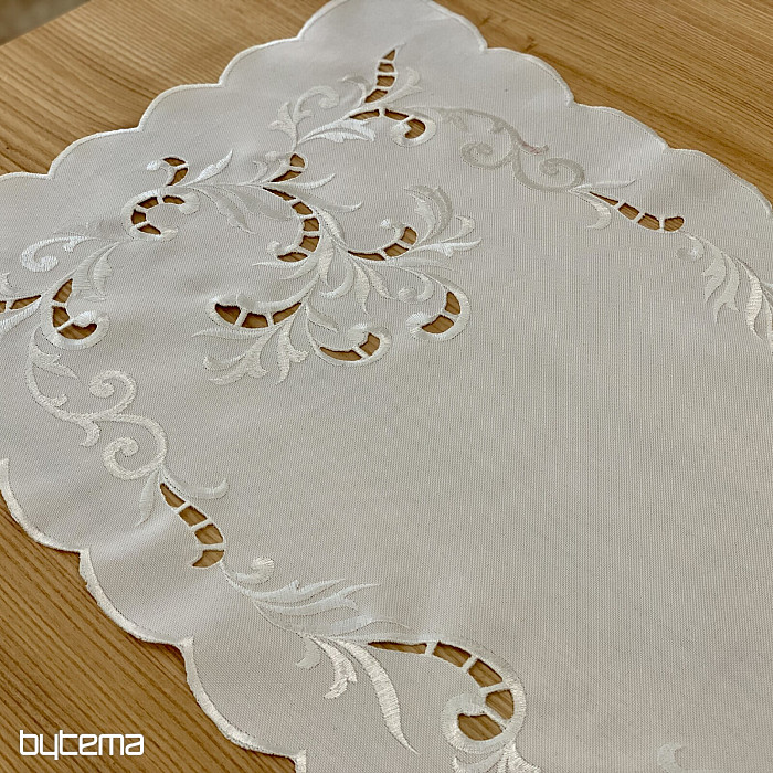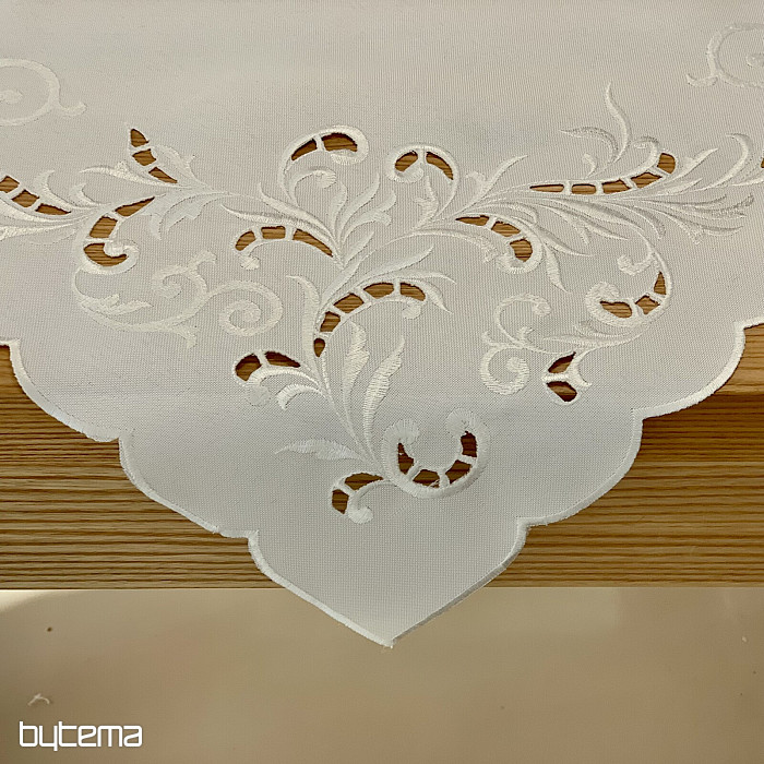 Una delicata tovaglia ricamata a traforo, adatta alle occasioni festive.