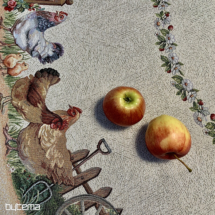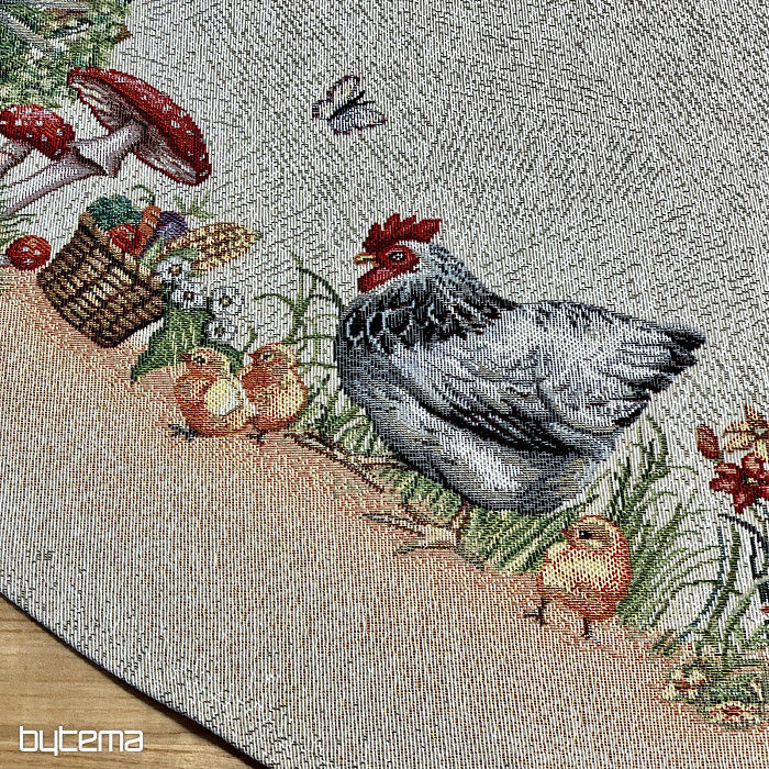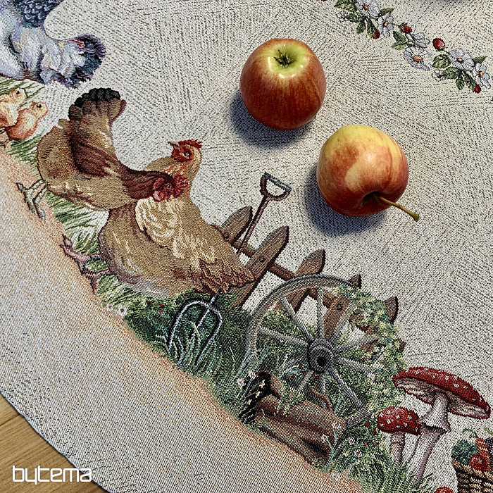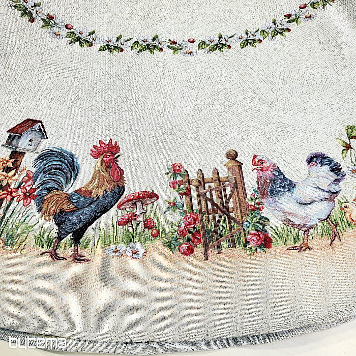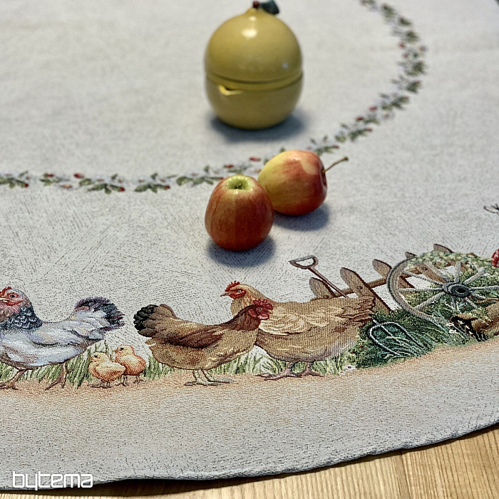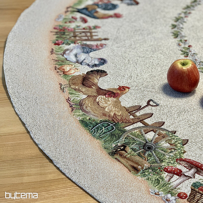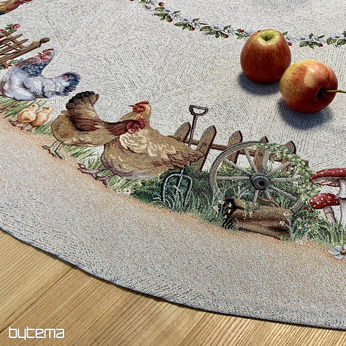 Una tovaglia rotonda realizzata in robusto tessuto arazzo delizierà qualsiasi contadino o amante degli animali.