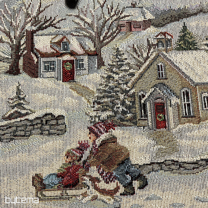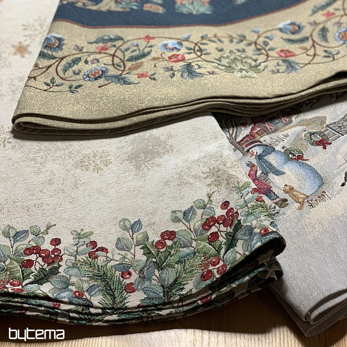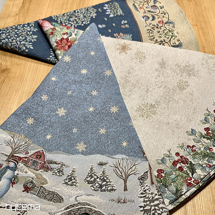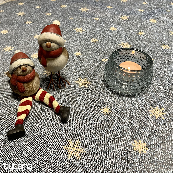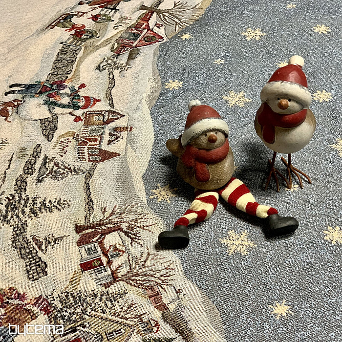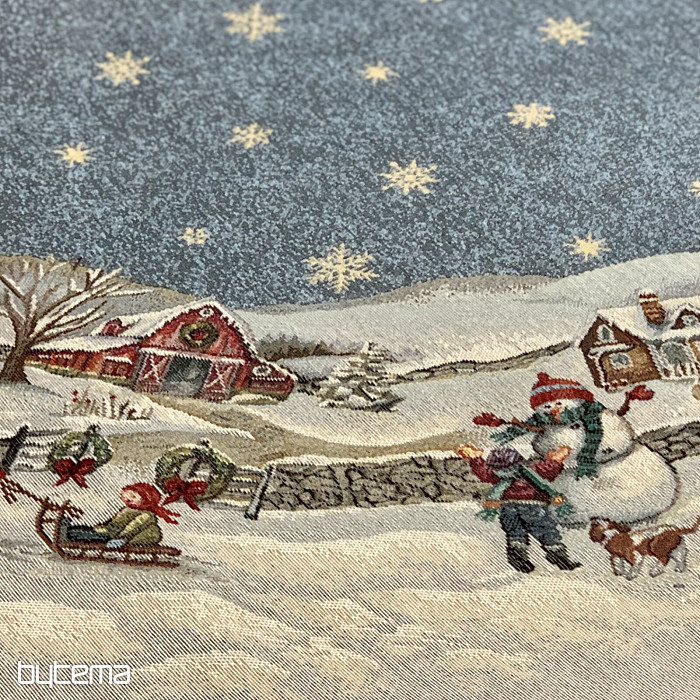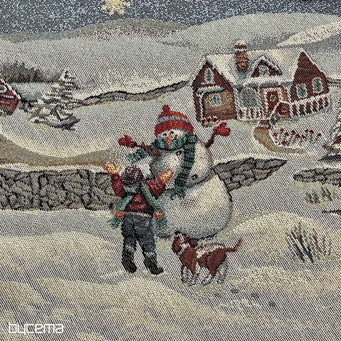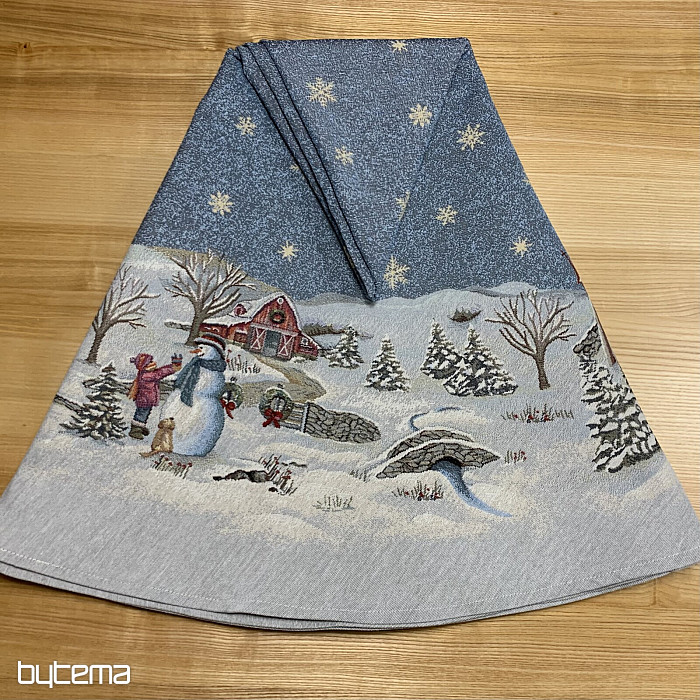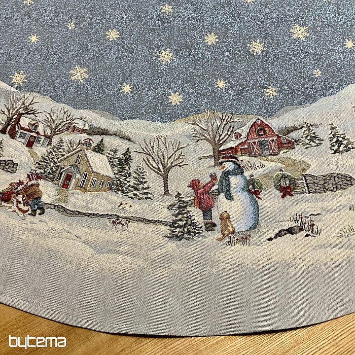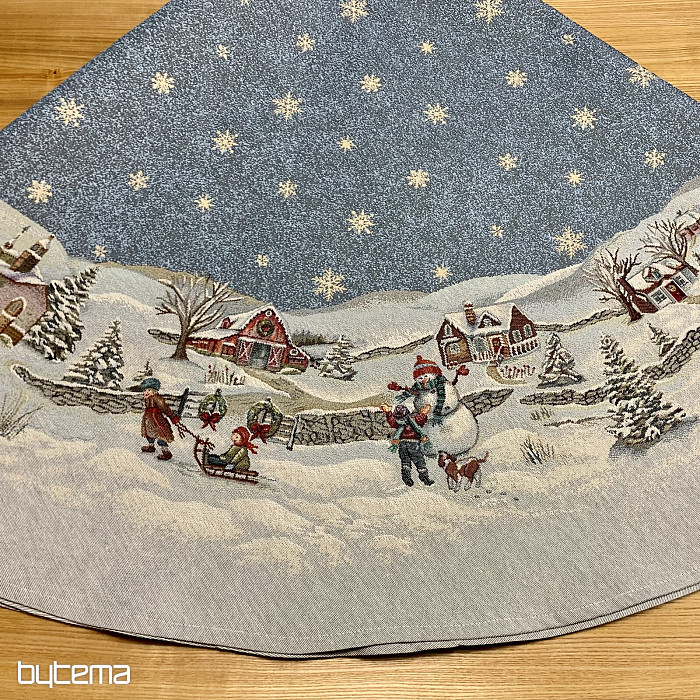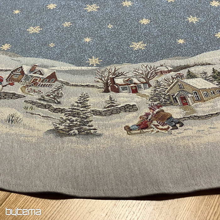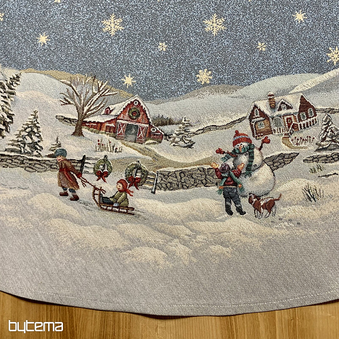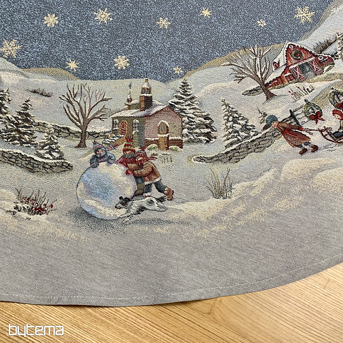 Una splendida tovaglia rotonda con un perfetto motivo invernale, ricca di gioia infantile per il Natale.
