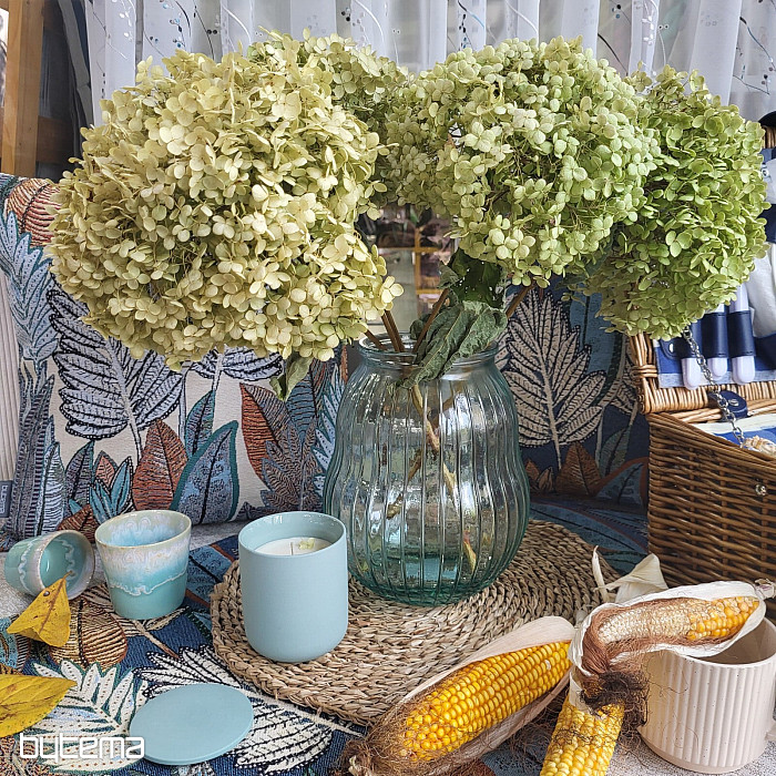 Il vaso in vetro trasparente ALBANIA con bouquet stagionale sarà una decorazione unica sul tavolo da pranzo o nel pergolato.