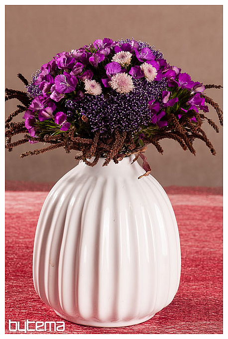 Il vaso è smerlato, il che farà risaltare i fiori con un mazzo di dokulata, ma anche i fiori singoli, come margherite e gerbere, staranno benissimo nel vaso.